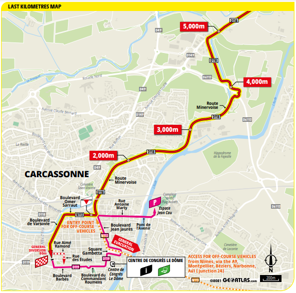 Os 16 Km finais são idênticos aos da etapa de 2018, vencida por Magnus Cort. Imediatamente antes de entrar no último Km há uma viragem à direta a 90º e a 200 metros há uma ligeira curva que não deve influenciar o sprint.
