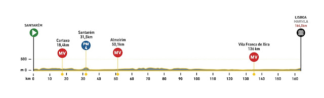 Dia para sprinters, a única da primeira parte da prova. Etapa que decorre na lezíria ribatejana, potencial para uma bela sesta.